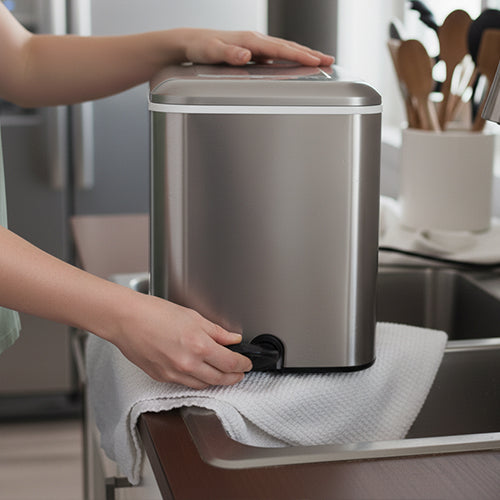 WIPE THE BIN AS WELL AS THE REMOVABLE PARTS. ONCE READY, RESTART ICE MAKING