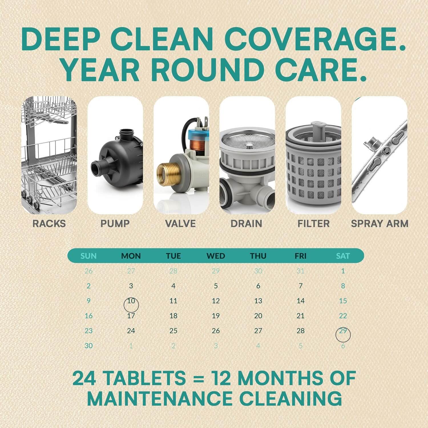 - For deep cleaning (heavily soiled dishwashers), some customers add a second tablet to the bottom of the tub