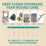 The tablets work effectively in soft, moderate, and hard water conditions. For best results, place one tablet in the detergent dispenser and run a hot empty cycle.