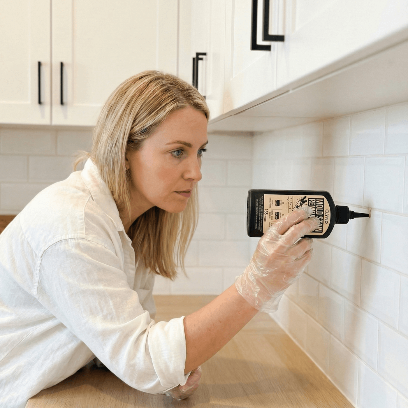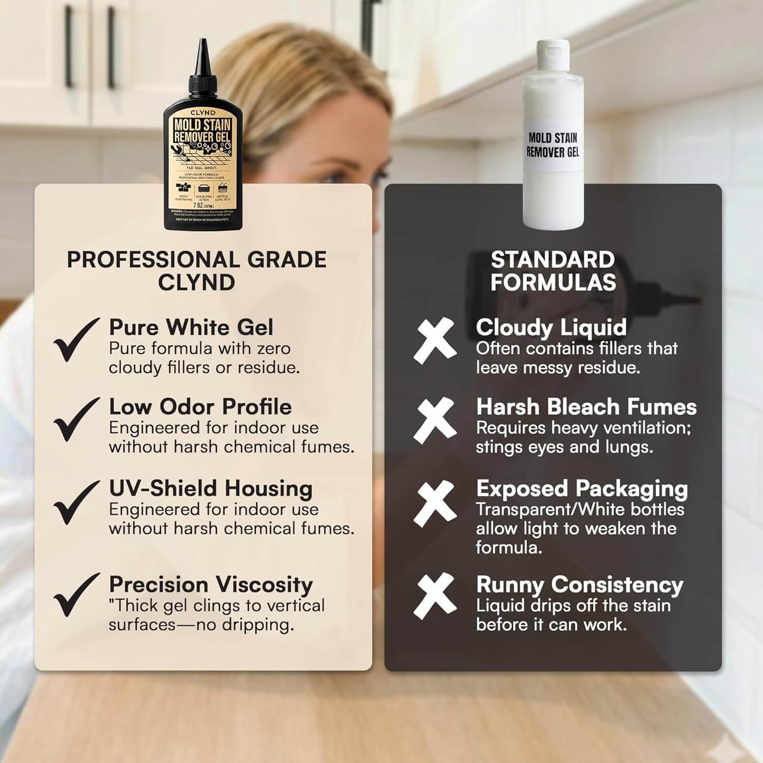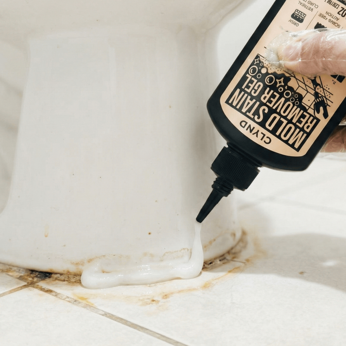 Yes. Unlike "watery" sprays that run down walls before they can work, CLYND Mold Stain Remover Gel Cleaner is a high-viscosity, thixotropic gel. It is engineered with "Precision Adhesion" to cling to vertical grout and tile lines without dripping or sagging, ensuring the formula stays in contact with the stain until it's gone.